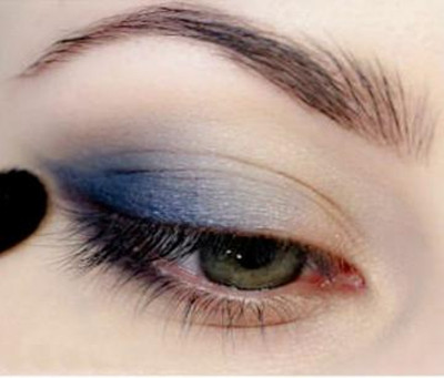眼影晕染眼尾弧线:用眼影刷沾取深棕色眼影,在手背轻扫几下,顺着眼尾延长线的上边缘微微上扬轻扫,然后再过渡晕染至眼皮中间与眼线衔接。这样可提拉眼尾,放大眼睛。