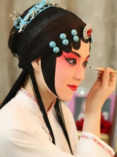 在化妆时还要注意人物与行当的差别,如:青衣要显得庄严、典雅,因此底色要浅一些,腮红的部位要小一些,颜色也要浅一些,柳叶眉、丹风眼,眼圈不要太重、太宽。