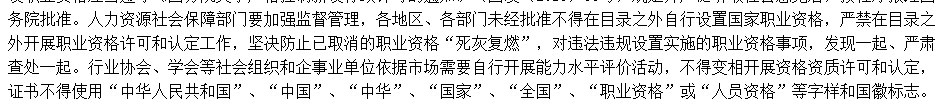 "人力资源社会保障部门要加强监督管理,各地区、各部门未经批准不得在目录之外自行设置国家职业资格,严禁在目录之外开展职业资格许可和认定工作,坚决防止已取消的职业资格“死灰复燃”,对违法违规设置实施的职业资格事项,发现一起、严肃查处一起。行业协会、学会等社会组织和企事业单位依据市场需要自行开展能力水平评价活动,不得变相开展资格资质许可和认定,证书不得使用“中华人民共和国”、“中国”、“中华”、“国家”、“全国”、“职业资格”或“人员资格”等字样和国徽标志"