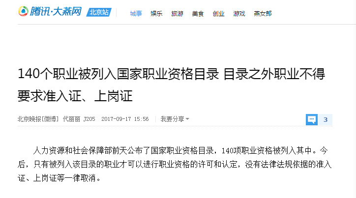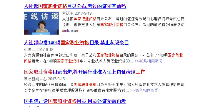 3》当然,国家一些权威网站新闻在2017年9月12日之后也已经进行了相关取消一些资格证书的报道,你可以查询;现在给你简单做点新闻截图看看: