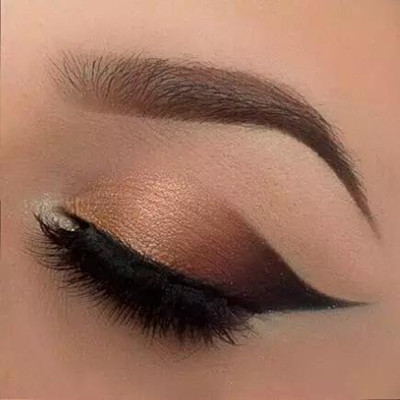 眼影晕染眼尾弧线:用眼影刷沾取深棕色眼影,在手背轻扫几下,顺着眼尾延长线的上边缘微微上扬轻扫,然后再过渡晕染至眼皮中间与眼线衔接。这样可提拉眼尾,放大眼睛。